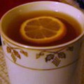 1 стакан крепкого чая 2 ст. ложки коньяка 2 ст. ложки меда В горячий свежезаваренный чай добавить коньяк и мед. По вкусу добавить дольку лимона.