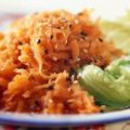 Морковь натереть на терке, добавить изюм и немножко меда для запаха. Подавать в креманке. Украсить листом салат и долькой апельсина.