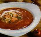 1 л томатного сока 150 г копченой грудинки 1 луковица 2 черешка сельдерея 0,5 стакана риса зелень петрушки соль, перец - по вкусу Лук очистить, нарезать полукольцами. Сельдерей и зелень петрушки вымыть, обсушить, измельчить. Грудинку нарезать аккуратными кусочками. Раскалить сковороду, обжарить грудинку, 4 мин. Добавить лук и сельдерей, готовить еще 4 мин. Промыть рис, несколько раз меняя воду. В кастрюле вскипятить томатный сок. Всыпать рис, еще раз довести до кипения, затем уменьшить огонь и варить 7 мин. Положить в кастрюлю с супом обжаренные грудинку, лук и сельдерей. Варить до готовности риса. В самом конце добавить зелень петрушки, соль и перец по вкусу.