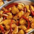 филе куриной грудки - 500 г репчатый лук - 1 шт. отварные шампиньоны - 200 г болгарский сладкий перец - 1 шт. сметана - 2-3 ст. ложки мадера - 1,5-2 ст. ложки Филе нарезать брусочками примерно 1,5х3 см, обжарить до румяной корочки на растительном масле с луком, нарезанным мелкими кубиками, затем добавить грибы, нарезанные тонкими пластинами вдоль. Через 2 минуты добавить нарезанный соломкой перец, залить сметаной и через пару минут добавить мадеру, как закипит - выключить.
