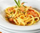 1 шт. репчатого лука 2 сладких перца (красный и зеленый) 300 г очищенных креветок 200 г резаных шампиньонов 2 зубчика чеснока 1 ст. ложка томатной пасты 5 консервированнх томатов 1 стакан светлого пива 1/2 банки консервированной кукурузы Разогреть оливковое масло в большой кастрюле с толстым дном, поджарить репчатый лук и 2 перца сладких, мелко нарезанные. Отварить креветки. Добавить в кастрюлю с луком резаных шампиньонов и 2 зубчика чеснока, жарить еще 5 минут. Смешать 1 ст. ложку томатной пасты, 5 консервированных томатов, 1 стакан светлого пива (можно заменить белым вином), посолить, поперчить. Добавить эту смесь в кастрюлю. Поварить 20-25 минут. В то же время сварить макаронные изделия (спагетти) в отдельной посуде. Положить креветки в соус из пива и довести до кипения. В соус добавить консервированную кукурузу. Немного поварить. Добавить в смесь готовые макаронные изделия, поварить еще полминутки. Выключить, добавить рубленую петрушку, закрыть крышкой еще на полминутки.