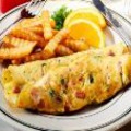 яйца - 3 шт. молоко - 1/4 стакана масло сливочное - 1 ст. ложка соль, мясо курицы (копченое) шампиньоны - 80-100 г майонез сыр - 100 г Сделать омлет. В смесь яиц с молоком добавить растопленное сливочное масло, соль и взбить (слегка). На разогретую с растительным маслом сковороду налить омлетную массу и жарить, не переворачивая. Когда масса станет золотистого цвета, омлет положить как блин на тарелку. Курицу нарезать кубиками, шампиньоны - ломтиками. Поджарить грибы на растительном масле, затем соединить их с курицей, тертым сыром. Заправить майонезом. В готовый омлет завернуть фарш (трубочкой) и поставить в микроволновую печь на 2 минуты, чтобы сыр расплавился.