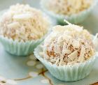 1 банка сгущёнки 2 ст. ложки сливочного масла 200 г кокосовой стружки целый миндаль Сгущёнку и масло выложить в кастрюльку. Поставить на плиту и растопить масло. Затем убрать с огня и всыпать кокосовую стружку, размешать и дать остыть (поставить на ночь в холодильник). Брать по ложечке кокосовую массу, сформовать лепёшечку, положить обжаренный миндаль и скатать в шарик, обвалять в кокосовой стружке.