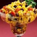 100 г муки 1 банка красной фасоли 1 банка кукурузы по 1 стручку красного и зеленого болгарского перца острый соус соль и перец Открыть банки с фасолью и кукурузой, выложить их содержимое в дуршлаг и промыть водой. Когда вода стечет, выложить их в миску и добавить нарезанные кубиками перцы. Заправить салат острым соусом и дайте хорошенько настояться. На стол нужно подавать в порционных вазочках, вместе с лепешками. К этому салату необходимо сделать мексиканские лепешки. Для чего смешать в миске муку и соль. Затем осторожно влить 50 г воды, постоянно помешивая. Вымесить тесто, накрыть миску крышкой и дать постоять 15 мин. Затем разделить тесто на 4 части, раскатать тоненькие лепешки и обжарить на тефлоновой сковороде по 1 мин с каждой стороны. Когда лепешки будут готовы, разрезать их на 8 частей.