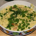 В то время как грудки жарятся, приступим к приготовлению соуса. Лук мелко нарезать и обжарить до золотистого цвета. Затем добавить туда растертый чеснок, карри, джем и вино. Тщательно перемешать, снять с огня, добавить майонез и оставшийся жир от грудок, перемешать еще раз и получим такую массу: