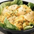 1 грудка курицы 1 горсть риса белок 1 яйца 1/2 банки консервированного зеленого горошка зелень по вкусу легкий майонез Курицу отварить в подсоленной воде, остудить. Рис отварить на пару, остудить. Смешать, добавить мелко порубленный белок. Добавить зеленый горошек и мелко порубленную зелень. Заправить все легким майонезом.