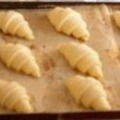 250 г творога 250 г маргарина (сливочного масла) 200 г муки 1 пакетик ванильного сахара 2 стакана сахарного песка Маргарин порубить ножом, творог размять, добавить муку, немного ванильного сахара, все хорошо вымесить, чтобы тесто было мягким и не прилипало к рукам. Разделить на 4 части, каждую часть раскатать в виде круга толщиной 0,4-0,5 см, круг посыпать обильно сахарным песком и разрезать на 4-8 частей, каждую часть скатать рогаликом и выпекать 10-15 минут при температуре 200 градусов, пока рогалики не зарумянятся.