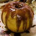 3 крупных яблока (лучше всего разных цветов - красное, желтое, зеленое) 2 ст. ложки сливочного масла 3 ст. ложки сахара 0,5 ч. ложки молотой корицы Яблоки вымыть, удалить сердцевину. Смешать 1 ст. ложку сахара с корицей, всыпать в середину каждого яблока равную порцию получившейся смеси. Яблоки поместить в жаростойкую форму срезом вверх, влить немного воды и запекать 5-7 минут при 220° С. Растопить сливочное масло, добавить оставшийся сахар, перемешать, варить 5-7 минут на среднем огне, постоянно помешивая, пока сахар не начнет карамелизоваться. Яблоки полить карамелью, дать ей застыть.