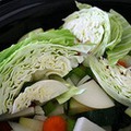 500 г мяса 1 вилок свежей капусты (1-1,3 кг) 2 средних моркови 2 средних помидора 3 ст. л. сметаны лук зеленый укроп сало свиное для жарки перец, соль - по вкусу Мясо порезать небольшими кусочками, посолить, поперчить и обжарить на свином сале. Капусту порезать соломкой, морковь натереть на крупной терке. Капусту поочередно с морковью слоями положить на мясо. Немного потушить, посолить, поперчить, перемешать. Тушить еще 20 минут, затем добавить нарезанные дольками помидоры, через 10 минут добавить сметану и тушить до готовности. Готовую капусту посыпать зеленым луком и укропом.