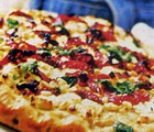 300 г готового пресного теста 300 г мягкого сыра с чесноком (или брынзы с измельченным чесноком) 5 помидоров 40 г кедровых орешков зелень базилика 3 ст. ложки оливкового масла Помидоры нарезать и обжарить в оливковом масле. Раскатать тесто в круг, переложить в форму, сделать бортик. Накрошить руками мягкий сыр и слегка раздавите вилкой. Сверху положить обжаренные помидоры, кедровые орешки и зелень базилика. Сбрызнуть оливковым маслом и выпекайте 20-30 минут при температуре 180-200 С.