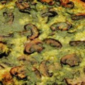 300 г готового пресного теста 200 г сыра моцарелла 3 зубчика чеснока 300 г свежих шампиньонов 1 пучок свежего шпината или 300 г замороженного 3 ст. ложки оливкового масла приправа для пиццы Моцареллу натереть на терке. Чеснок измельчить. Раскатать тесто в круг, аккуратно переложите на противень, сделать небольшой бортик для начинки. В раскаленное масло выложить нарезанный свежий шпинат и потушить его несколько минут. Добавить измельченный чеснок, посолить, тушить еще 2-3 минуты (замороженный шпинат готовить так же). Сбрызнуть тесто оливковым маслом, сверху разложить готовый шпинат, нарезанные листочками свежие шампиньоны. Посыпать пиццу сыром и приправой для пиццы. Выпекать в разогретой до 200 С духовке 20-30 минут.