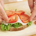 4 ломтика поджаренного хлеба (хлебцы, гренки) масло листья салата 120 г вареного языка или другого вареного мяса 4 ломтика сыра 1 помидор Поджаренные гренки смазать сливочным маслом, положить лист салата, сверху - язык и сыр. Запечь, пока сыр расплавится. Подавать, украсив ломтиками помидора.