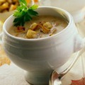 300-350 г свежих (мороженых) грибов 2 яйца растительное масло 1 луковица 2 ст. л. картофельного пюре соль, перец петрушка сухарики Отварные грибы мелко порезать и пропитать горячим подсолнечным маслом, добавить мелко порезанный лук. Через 10 минут влить 1 литр кипящей воды, добавить картофельное пюре и варить на медленном огне 10 минут. Яйца отварить, мелко покрошить, добавить в суп. Суп заправить солью, перцем и порезанной мелко петрушкой, добавить сухарики по вкусу.