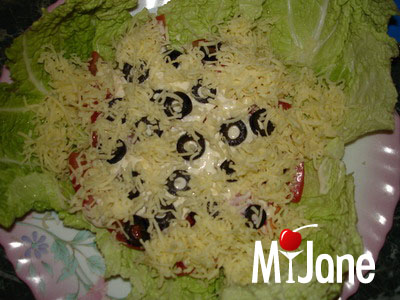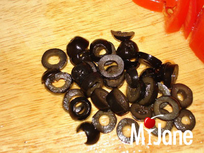 Далее выложить колечки маслин.