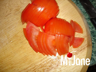 Помидоры порезать тонкими ломтиками.