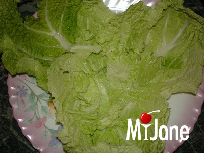 На плоскую тарелку вложить 2-3 листа салата. Один лист мелко порвать.