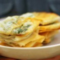 200-300 г свинины маленький кочан капусты морковь редька сладкий перец тесто, как на пельмени Овощи мелко порезать или натереть, перемешать. Посолить, поперчить по вкусу, при желании добавить сахар. Поджарить до полуготовности кусочки свинины, добавить овощи, потушить до готовности. Пельменное тесто раскатать и нарезать на равные квадратики. В середину положить мясо с овощами, свернуть тесто конвертиком и обжарить во фритюре до золотистой корочки. Подавать со сметаной.