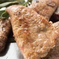 500 г печенки 2 ст. л. муки соль, перец - по вкусу 50 г жира 3 головки лука 2 яблока 2 апельсина 2 ст. л. сливочного масла 3 ст. л. 10% сливок (сметаны) зелень Очищенную от пленки и жил печенку нарезать ломтиками, обвалять в смешанной с перцем муке. Обжарить в разогретом жире с обеих сторон до образования светло-коричневой корочки, затем посолить. Отдельно в разогретом масле потушить рубленый лук, порезанные яблоки и апельсины, добавить сливки (сметану). Ломтики печенки выложить на блюдо, на каждый кусочек положить тушеные фрукты. Сверху посыпать рубленой зеленью.