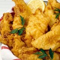 Навага 1 стакан муки 1,5 ст. ложки растительного масла соль 1 стакан воды или пива 2 яичных белка жир для фритюра Подготовленную навагу промыть, вытереть досуха, посолить, порезать на порционные кусочки. Для кляра: тщательно смешать муку, масло, белки, добавить воду или пиво. Все взбить до однородной массы. Кусочки рыбы обмакнуть в кляр и жарить во фритюре до образования корочки.