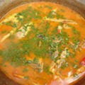 500 г рыбы 1 луковица 2 ст. ложки растительного масла 1-2 ст. л. томата 2 соленых огурца 2 ст. л. мелко нарезанного зеленого лука 1 стакан воды соль красный молотый перец на кончике ножа Рыбу порезать на порционные куски. Лук мелко нарезать и обжарить на масле, переложить в горшочек и минут 10 тушить в духовке. Горшочек вынуть, положить рыбу, нарезанные ломтиками огурцы и томить еще 10 минут. Посолить, поперчить, добавить воду, накрыть крышкой и тушить в духовке до полной готовности.