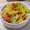 400 г картофеля 100 г капусты 2 луковицы 100 г моркови 50 г масла сливочного черный молотый перец соль Порезать картофель на небольшие кубики и нашинковать капусту. Мелко нарезать лук и морковь. Овощи смешать, посолить и поперчить. Для этого блюда можно взять специальные горшочки для тушения в печи. Сверху овощей положить масло, закрыть крышкой и потушить 10-12 мин на полной мощности. В течение этого времени перемешать пару раз. Для микроволновки мощностью 600-650 Вт.