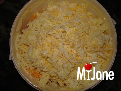 Сыр, морковь и отварные яйца натереть на мелкой терке.