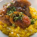 свинина - 1 кг лук - 2 шт. рис - 1 стакан сладкий перец - 2 стручка сметана - 0,5 стакана жир - 2 ст.л. помидоры - 3-5 шт. Лук нарезать кружочками, положить в кастрюлю с жиром, а наверх поместить свинину, нарезанное крупными кусками, посолить, посыпать перцем и тушить, поливая водой, пока мясо не станет мягким. Рис промыть несколько раз горячей водой, положить в кастрюлю, смазанную жиром, сверху поместить тушеные куски мяса, прибавить нарезанные помидоры, залить сметаной и тушить в духовке. Это блюдо не надо мешать, а лишь осторожно вилкой пробовать готовность риса. Подать с овощным салатом.