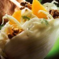 400 г квашеной капусты 2 апельсина 1/2 банки консервированных ананасов Для заправки: сок и цедра 1 апельсина 150 г йогурта 1 ст. л. лимонного сока 2 ст. л. сахара молотый черный перец соль Два апельсина очистить, разделить на дольки, удалить пленку, порезать кусочками. Ананасы мелко порезать и смешать с кусочками апельсинов. Добавить квашеную капусту. Приготовить заправку: с апельсина теркой снять цедру и выжать сок. Йогурт соединить с цедрой и соком апельсина. Добавить сок лимона, сахар, соль, перец. Перемешать. Полученной заправкой полить салат, перемешать. Украсить грецкими орешками и дольками апельсина.