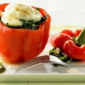 1-1,5 кг болгарского перца Для фарша: 500 г черствого любого хлеба 3 яйца, сваренные вкрутую 2 луковицы растительное масло для обжаривания 3-4 дольки чеснока перец молотый 100 г майонеза Кусочки черствого хлеба поджарить в духовке, пропустить их через мясорубку. Мелко нарезанный лук спассеровать на растительном масле (не менее 4 ст. л.). Чеснок пропустить через чеснокодавилку, мелко нарезать яйца. Хорошо перемешать все продукты, посолить. Фарш готов. Перец, не обрезая плодоножки и не чистя от семян, хорошо промыть и обжарить на растительном масле до готовности. Когда чуть остынет, у каждого перца срезать "шляпку" около плодоножки и начинить фаршем. Подавать к столу со сметаной.