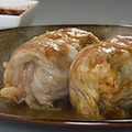 1 кочан капусты 150 г риса 200 г свежих грибов (или 40-50 г сушеных) 1 луковица Выберите кочан капусты с ровными неповрежденными листьями. Аккуратно вырезать кочерыжку и снять большие листья, пригодные для голубцов Утолщения нижней части осторожно срезать, обдать листы кипятком. Слегка отбить листья, чтобы в них было удобно заворачивать фарш. Приготовить фарш: рис отварить в подсоленной воде до полуготовности откинуть на сито, промыть холодной водой. Свежие грибы нарезать тонкими пластинками, обжарить, смешать с рисом и мелко нашинкованным репчатым луком. Посолить, если требуется. Используя сухие грибы, нужно предварительно замочить их на 2-3 часа, а затем сварить в той же воде, а отвар можно использовать для соуса. 1 ст. л. фарша выложить на капустный лист и завернуть голубец конвертиком. Обжарить подготовленные голубцы на сковороде, сложить в гусятницу, залить сметанным соусом так, чтобы он едва прикрывал голубцы. Тушить голубцы 30-40 минут, в конце добавить немного томатного сока.