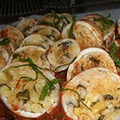 5-6 тушек кальмара 1 стакан риса 1-2 моркови 1 луковица 1 ст. ложка растительного масла перец горошком лавровый лист чеснок зелень соль Промыть рис, сварить до готовности. Морковь и лук мелко нашинковать и спассеровать в течение 5 минут в масле. Добавить рис и потушить еще 5 минут. Кальмары очистить от внутренностей, снять наружную пленку, подержав кальмары в теплой воде несколько минут. Вымытые тушки целиком поварить 3-5 минут со специями. Заполнить их фаршем, положить под гнет и охладить. Перед подачей нарезать ломтиками, разложить на блюдо и полить растительным маслом, смешанным с толченым чесноком, посыпать измельченной зеленью. Либо с чесночным томатным соусом.