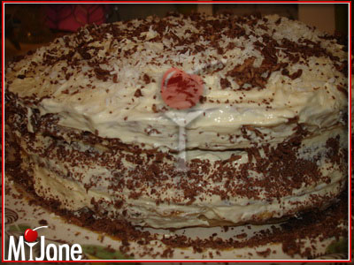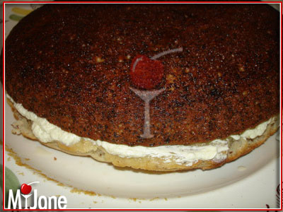 Сделать 2 корж: 1 яйцо, 0,5 стак. сахара, 0,5 стак. сметаны, 0,5 стак. муки, немножко соды, подготовленный мак.