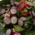 300 г говяжьей печени 6-7 шт. редиса 2-3 шт. сладкого перца майонез листья салата растительное масло перец молотый, соль - по вкусу Печень промыть, очистить от пленок, нарезать кубиками и обжарить на масле, затем охладить. Редис нарезать кружочками, сладкий перец нарезать кольцами. Листья салата некрупно порвать. В салатнике смешать все ингредиенты, заправить майонезом, добавить соль, молотый перец, перемешать.