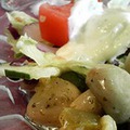 200 г копченой рыбы 200 г свежих шампиньонов 400 г помидоров 2 луковицы майонез 1 ст.л. творога перец, соль растительное масло Шампиньоны отварить, охлаждить и нарезать соломкой. Рыбу очистить и нарезать небольшими кубиками. Лук и помидоры нарезать кубиками. Сделать соус: смешать майонез с творогом, растительным маслом, посолить и поперчить по вкусу. Взбить в однородную массу. Рыбу, грибы и овощи смешать в салатнике и заправить полученным соусом.