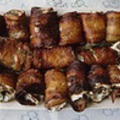 3 баклажана 100 г грецких орехов растительное масло 2-3 зуб. чеснока майонез соль Баклажаны нарезать в длину толщиной в 1 см, обжарить с обеих сторон на масле, посолить. Остудить. Сделать начинку: грецкие орехи пропустить измельчить блендером, добавить чеснок, соль и майонез, перемешать до однородной массы. На каждый ломтик баклажана положить по 1 ч.л. начинки, свернуть рулетиком. Охладить.