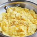 3 яйца 100 г яблок 50 г сливочного масла соль Яблоки очистить от кожуры, вырзать сердцевину, осторожно нарезать тонкими ломтиками и слегка обжарить на сливочном масле. Взбить яйца миксером и вылить их на яблоки, посолить, перемешать и жарить до готовности.