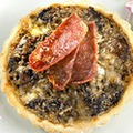 150 г муки 100 г сливочного масла 50 мл сливок (20%) Начинка: 60 г ветчины, 50 г сыра, 2-3 шампиньона, 2 яйца, 1 ст.л. муки, 100 мл сливок (20%), перец, соль - по вкусу. Из муки, сливочного масла и сливок быстро замесить тесто (песочное) и положить его на 30-40 мин. в холодильник. Формочки смазать жиром и выстелить тонким пластом теста. Ветчину нарезать ломтиками, сыр нарезать мелко. Шампиньоны очистить, промыть, потушить и добавить смесь из муки, яиц и сливок. Полученную массу хорошо перемешать, добавить ветчину, сыр, соль, перец, выложить в подготовленные формочки, запекать в духовке и выпекать 20-30 минут.