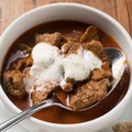 400 г свиного шницеля 400 г филе баранины 6 зуб. чеснока 1 луковица 1 небольшой перец чили соль, перец растительное масло Соус: 1 свежий огурец, 250 г нежирного творога, 150 г сливок (20%) Мясо обжарить на масле до готовности. Добавить кольца лука, мелко нарезанный чили и чеснок, посолить и поперчить. Мясо подавать, полив соусом. Сделать соус: огурец натереть на терке, творог размять вилкой, добавить сливки и все тщательно перемешать. Посолить и поперчить по вкусу.