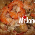 1 кг замороженных королевских креветок 2 свежих помидора 1 красная луковица 4 белых луковицы 500 г замороженных грибов 1 ст.л. постного майонеза растительное масло Красную луковицу нарезать полукольцами.
