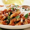 300 г цветных макарон 50 г сливочного масла 1 луковица 150 г салями 150 г свежих грибов 1 маленький красный острый перец 4 ст.л. сухого белого вина 3 ст.л. лимонного сока 6 консервированных помидоров (без кожицы) зелень тертый сыр Макароны отварить в подсоленной воде, с добавлением 1 ст.л. растительного масла. Откинуть на дуршлаг, промыть теплой кипяченной водой. Макаронные изделия переложить обратно в кастрюлю. Сделать соус: на растопленном сливочном масле поджарить мелко нарезанный лук до мягкости. Добавить небольшие кусочки салями, нарезанные грибов и измельченный перец. Все обжарить в течение нескольких минут, добавить вино, лимонный сок и измельченные помидоры. Довести до кипения и тушить на небольшом огне 5-7 минут. Соус вылить к макаронам, добавить петрушку и тертый сыр, хорошо встряхнуть и сразу же подавать к столу.