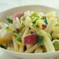 150 г рожков (бантиков, спиралек) 200 г отварного куриного филе 200 г зеленого винограда (без косточек) 1-2 моркови 1 ст.л. тертого сыра твердых сортов (пармезана) 1 зуб. чеснока 1/2 ст.л. кедровых орешков 3 ст.л. майонеза 1 стебель сельдерея соль, перец Заправка: 1 ст.л. винного уксуса, 3 ст.л. оливкового масла, соль, перец. Сделать заправку: взбить венчиком необходимые ингредиенты, посолить и поперчить по вкусу. Макаронные изделия отварить в подсоленной воде, слить воду и горячими переложить в миску, смазав 1 ст.л. готовой заправки. Чеснок очистить, измельчить вместе с кедровыми орешками, смешать в отдельной миске с майонезом и тертым сыром, посолить и поперчить по вкусу. Курицу нарезать небольшими кусочками. Сельдерей и морковь промыть, очистить и обсушить, нарезать тонкими брусочками. Виноград разрезать на половинки. К остывшим макаронам добавить нарезанные ингреиенты, заправить майонезной смесью. Разложить по тарелкам, добавив заправку с оливковым маслом.