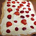200 г жирного творога 200 г сливочного масла 2 стак. муки 1/2 стак. сахара 2 яйца 1 ч.л. соды 5-7 ягод клубники Творог растреть с размягченным маслом, добавить желтки, муку и соду (не гасить). Замесить тесто, разделить его на 4 части, поставить в морозильник на 30 минут. Белки охладить в холодильнике (пока замешивалось тесто), взбить их с сахаром до густой пены. Каждую часть теста раскатать в тонкий пласт (0,5 см), каждый из которых смазать вбитыми белками, выложить нарезанные ягоды клубники, свернуть в рулет. Готовые рулетики выложить на выстланный пергаментной бумагой и смазанный маслом противень. Выпекать при температуре 150С в течение 45 минут. При подаче нарезать на порционные кусочки.