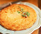 На 2 лепешки: 325 г картофеля 6-8 перьев зеленого лука 2 яйца 1/4 ч.л. соли 1/8 ч.л. перца 125 г тертого сыра 4 ст.л. сливочного масла 2 ст.л. растительного масла Очищенный картофель натереть на терке, зеленый лук измельчить. В небольшой миске взбить яйца с солью и перцем, добавить натертый картофель и лук, перемешать. Добавить тертый сыр и вновь перемешать. На сковороде растопить 2 ст.л. сливочного масла и 1 ст. л. растительного. В разогретое масло положить половину порции картофеля, примять его лопаткой, чтобы получилась плоская лепешка. Жарить на среднем огне, приминая лопаткой, 4-5 минут, пока низ лепешки не зарумянится. Переложить лепешку на тарелку, сверху накрыть тарелкой и перевернуть ее. Переложите перевернутую лепешку на сковороду. Жарить, прижимая лопаткой, пока вторая сторона лепешки не зарумянится. Готовую лепешку обсушить на салфетке.