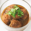 450 г говядины 1 луковица базилик 1 яйцо 25 г муки 1 ст.л. арахисового масла Для соуса: 300 мл воды, 3 ст.л. арахисового масла (для бутербродов), 2 луковицы, 25 г жаренного арахиса, 25 г изюма без косточек, 1 ч.л. чили, 1 ч.л. соуса табаско, молотый имбирь, соль. В мясорубке провернуть говядину и лук. Фарш перемешать, добавив измельченный базилик. Скатать шарики (штук 20), обвалять сначала во взбитом яйце, затем - в муке. На сковороде растопить масло и обжаривать 10-15 минут, постоянно помешивая. Сделать соус: в кастрюлю налить масло, добавить арахисовое масло, мелко нарезанный лук, арахис, изюм, чили, табаско, имбирь и соль по вкусу. Непрерывно помешивая, довести до кипения. Убавить огонь и варить в течение 5 минут. Подавать тефтели, полив соусом, или в соуснике.