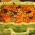 550 г тыквы (или кабачков) 30 г муки 250 г свежих грибов 250 г помидоров 50 г растительного масла 100 г сметаны соль Тыкву очистить от кожицы и от семян, нарезать кусочками, запанировать в муке и обжарить со всех сторон. Помидоры разрезать пополам и обжарить вместе с тыквой. Свежие грибы нарезать ломтиками и обжарить отдельно. На кусочки жареной тыквы положить грибы в сметане, а сверху половинки жареных помидоров, залить сметаной. Запекать в духовке 15 минут при температуре 180-200С. Вместо тыквы можно использовать кабачки.