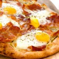 300 г теста для пиццы 300 г помидоров 6-8 яиц (по одному яйцу на порционный кусок) 100 г тертого сыра растительное масло соль Тесто раскатать в круглую лепешку, а можно нарезать на куски в виде треугольников. Тесто выложить на подготовленный противень, смазать тесто маслом, покрыть тонкими ломтиками помидоров и сыра, разбить яйца (как для яичницы-глазуньи), сбрызнуть маслом и посыпать яйцо солью. Затем около 20 минут выпекать в духовке при температуре 200-220С. В пиццу по вкусу можно добавить тонкие ломтики бекона.