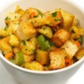 300 г белого хлеба (черствого) 1 стак. (250 мл) мясного бульона 1/2 стак. (125 мл) сухого красного вина 100 г шпика оливковое масло 2-3 зуб. чеснока 2 стебля лука-порея петрушка соль, черный перец порошок паприки Хлеб нарезать кубиками, положить в глубокую миску, залить смесью теплого бульона и вина, накрыть крышкой, оставить на 30-40 минут. Затем вынуть хлеб шумовкой и переложить в отдельную миску. Лук-порей нашинковать, чеснок пропустить через пресс. Шпик нарезать мелкими кубиками. В сотейнике разогреть масло, обжаривать кусочки хлеба, шпик и чеснок в течение 10-15 минут, постоянно помешивая, пока хлеб не станет золотистым. Добавить лук и жарить еще 2-3 минуты. Выложить все в глубокую миску, посолить, поперчить, добавить порошок паприки и перемешать. Посыпать измельченной петрушкой и сразу подавать к столу.