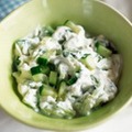 1 крупный огурец 3 зуб. чеснока 250 мл сметаны 2 щепотки сушеного чили 3-4 ст.л. рубленых грецких орехов соль укроп свежий Огурец промыть, натереть на мелкой терке. Добавить выдавленный чеснок, сметану, чили, нарезанный укроп и соль. Смешать, накрыть и поставить в холодильник на 15-20 минут. Подавать, переложив в салатницу и посыпав измельченными грецкими орехами.