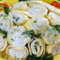 150 г филе курицы 50 г зеленого горошка 1 свежий огурец 1 луковица 2 картофелины 100 г майонеза Для блинчиков: 4 яйца, 1 ст.л. муки, 100 г сыра фета, соль, сода, зелень. Сделать блинчики: яйца взбить, добавить муку, соль, немного соды и испечь 3 блинчика. Сыр смешать с рубленой зеленью, каждый блинчик смазать этой массой и свернуть в трубочки, затем нарезать небольшими кусочками. Сделать салат: Картофель отварить, остудить и натереть на крупной терке. Лук очистить, нарезать полукольцами и обжарить на масле до золотистого цвета, затем смешать с тертым картофелем. Куриное филе обжарить до готовности на растительном масле, остудить и нарезать кубиками, смешать с зеленым горошком. Огурец промыть и нарезать кубиками, добавить к куриному филе с горошком, заправить майонезом. Оформление: круглую глубокую миску выложить пищевой пленкой. Первым слоем уложить кусочки блинчиков, затем немного картофеля с луком, сверху - куриный салат. Далее чередовать картофельный и куриный слои, последний слой - картофельный. Салат примять, дать настояться в холодильнике в течение 1 часа. Перед подачей салат перевернуть на плоское блюдо, снять пищевую пленку.