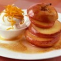 4 сладких яблока 5 ст.л. лимонного сока 400 г бананов 150 г обезжиренного творога 100 г темного шоколада 4 ст.л. рома 50 г сливочного масла Яблоки вымыть, удалить сердцевину. С помощью острого ножа яблоки разрезать по спирали так, чтобы его можно было снова сложить как целое. Подготовленные яблоки уложить в огнеупорную форму, выстланную пергаментной бумагой. Яблоки сбрызнуть лимонным соком (4 ст.л.) и ромом, сверху распределите нарезанное небольшими кусочками сливочное масло. Запекать в духовке при 180-200С в течение 15-20 минут. Бананы очистить, один нарезать кружочками, остальные с помощью блендера смешать с творогом и оставшимся лимонным соком. Шоколад растопить на водяной бане. Готовые яблоки выложить на тарелку, вокруг выложить кружочки банана, полить бананово-творожным соусом и растопленным шоколадом.
